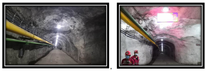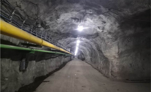 石门巷道风水管线径直向采场延伸,管线即使在弯道处的安装也要体现出统一水平。电缆由大到小、管线由粗到细有序排列……